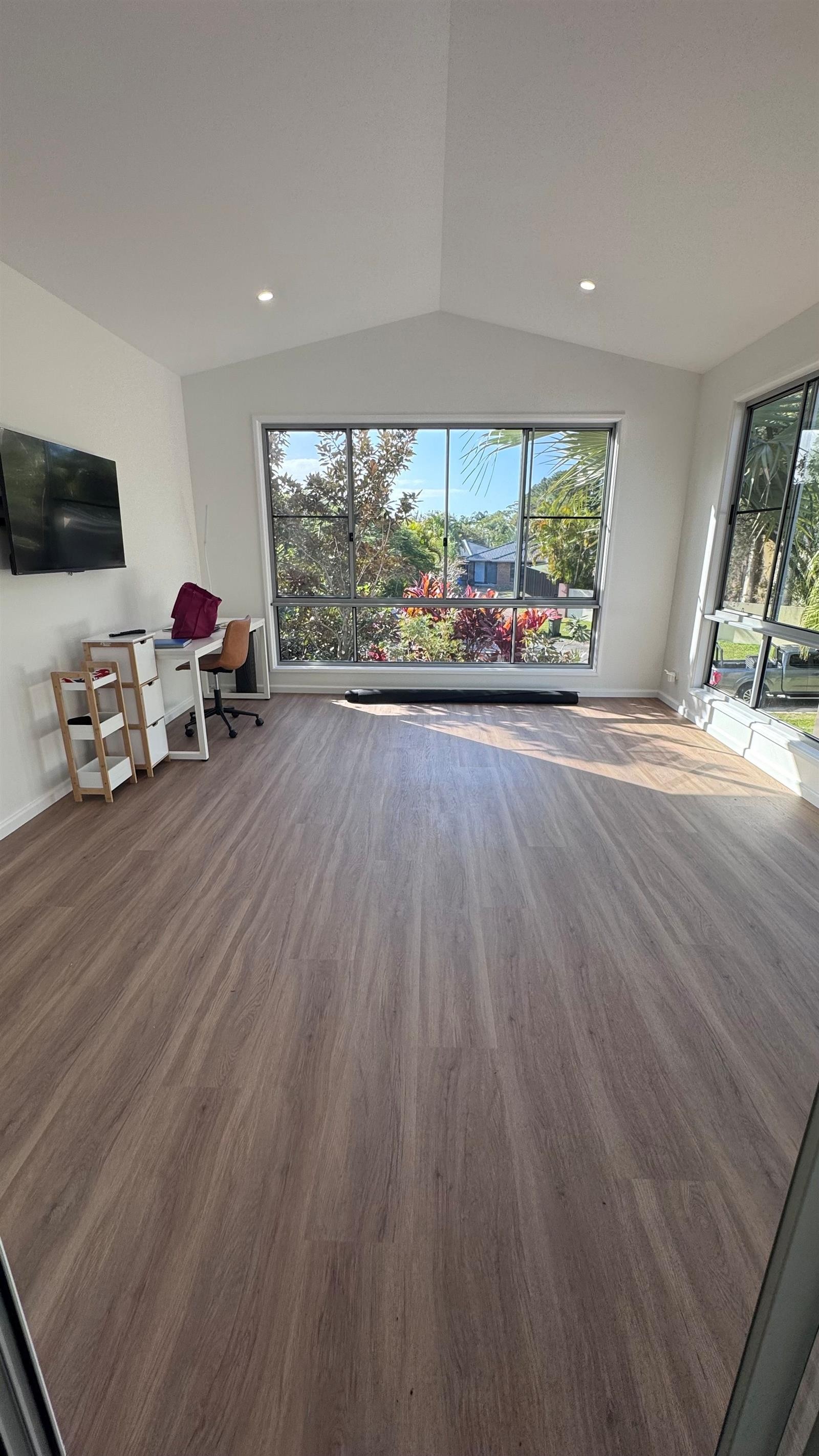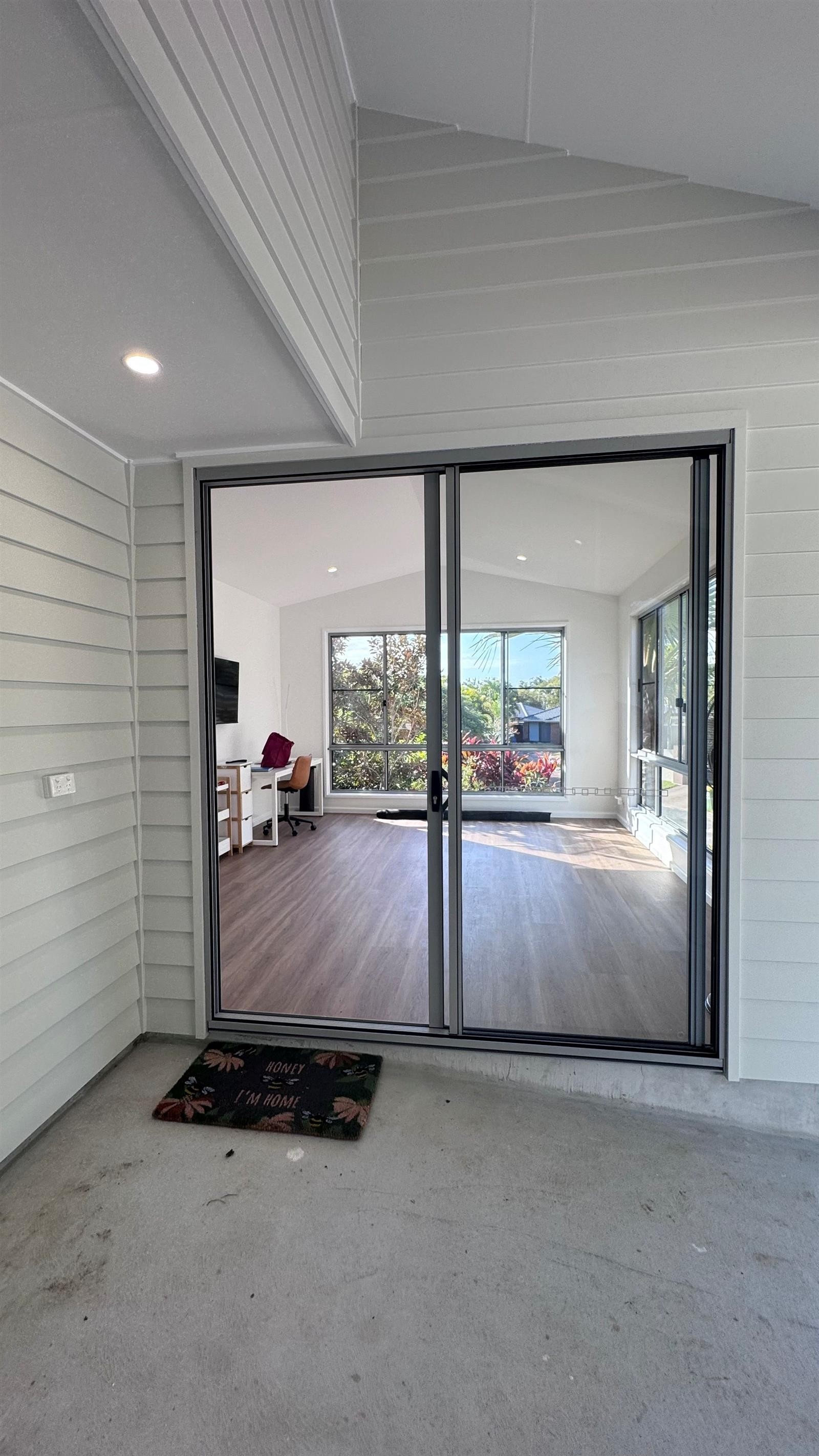 We added a new structure beside the garage that includes a carport, bathroom and gym area with raked ceilings to give the room a larger and more inviting feel. The external finish features James Hardie Scyon Linear board and Fine Texture, while hybrid timber look flooring and fresh white walls create a clean coastal atmosphere that ties in with the existing home. Bradnams windows and doors bring natural light into the space and complete the modern feel.