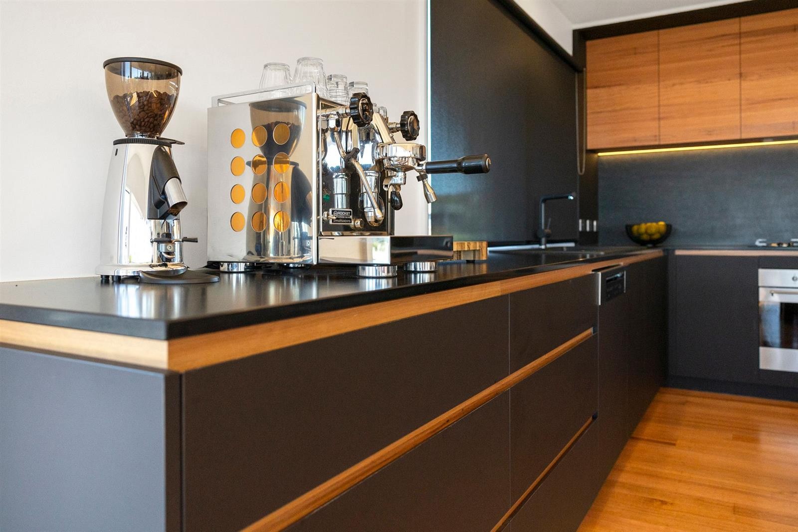 A complete kitchen renovation as part of a whole home tranformation! the combination of black and timber making for a warm and cosy space for cooking and entertaining.